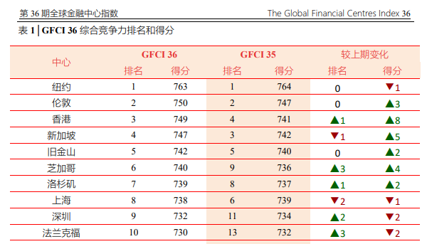 9月24日,備受全球金融界矚目的第36期《全球金融中心指數》報告(GFCI 36)出爐了。香港的總排名為全球第三位,在亞太區居首,重登亞洲第一金融中心的寶座。在前五名中,香港整體評分也是上升最多的,增加了8分。