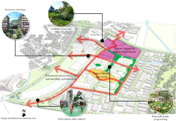新加坡北部的商業中心林地區域中心將加強與市中心連通,兀蘭北地鐵站旁將建聯運樞紐,更新生態區和工業區,支持產業轉型。